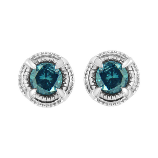 .925 Sterling Silver Treated Colored Diamond Modern 4-Prong Solitaire Milgrain Stud Earrings