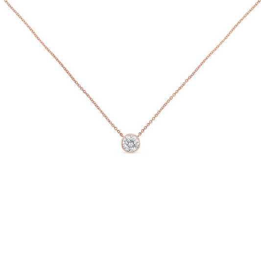 10K Rose Gold 1/2 Carat Round Brilliant-Cut Diamond Modern Bezel-Set Solitaire 16"-18" Pendant Necklace (H-I Color, SI2-I1 Clarity)