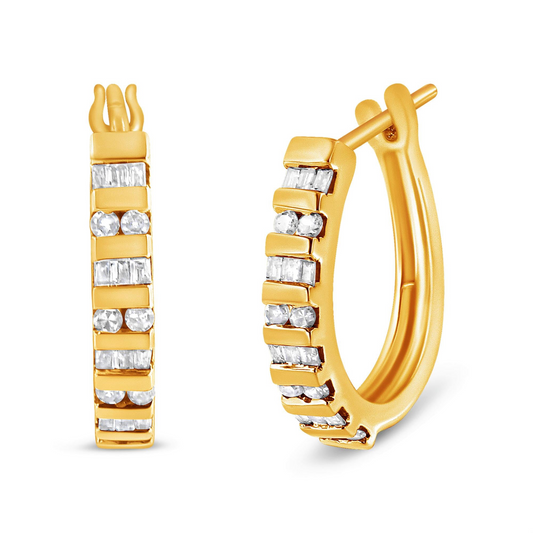 10K Gold Round and Baguette-Cut Diamond Hoop Earrings (I-J Color, I2-I3 Clarity)