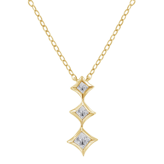 10K Gold 1/5 Cttw Princess Cut Diamond 3 Stone Drop 18" Pendant Necklace (H-I Color, SI2-I1 Clarity)