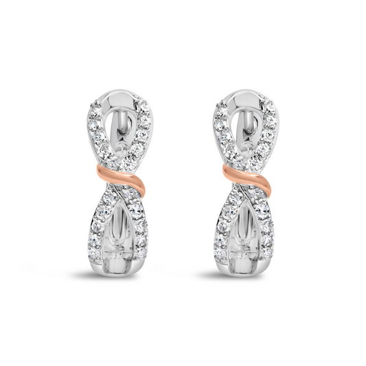 10K White and Rose Gold 1/3 Cttw Diamond Infinite and Ribbon Hoop Earrings (H-I Color, I1-I2 Clarity)
