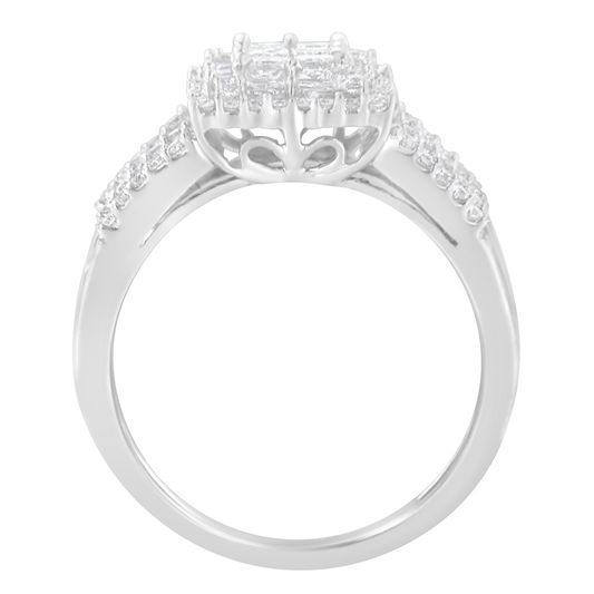 10K White Gold Diamond Cluster Ring (1 cttw, H-I Color, I1-I2 Clarity)