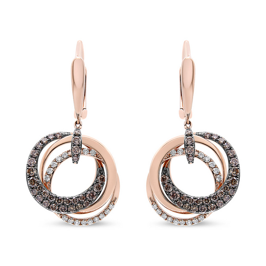 14K Rose Gold 1.00 Cttw White and Brown Diamond Intertwining Hoops and Circle Dangle Earrings (H-I/Brown Color, SI1-SI2 Clarity)