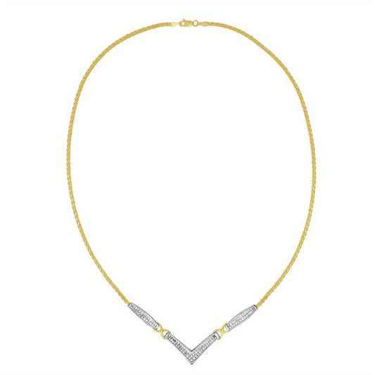 14K Yellow and White Gold 1/4 Cttw Princess Cut Diamond Channel-Set “V” Shape 18" Pendant Necklace (H-I Color, SI2-I1 Clarity)