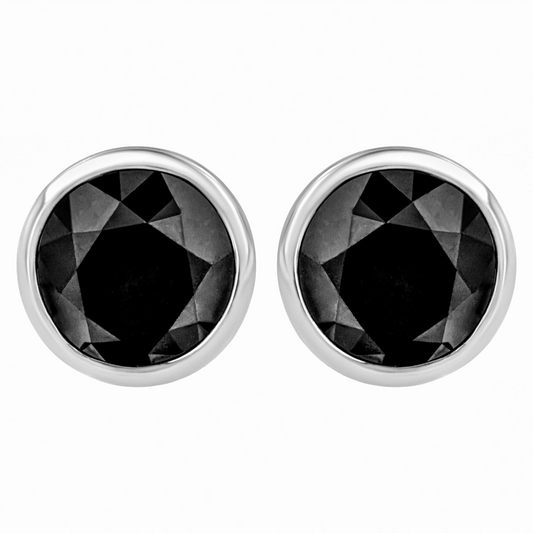 14K White Gold Round Brilliant-Cut Black Diamond Bezel-Set Stud Earrings with Screw Backs (Fancy Color-Enhanced, I2-I3 Clarity)