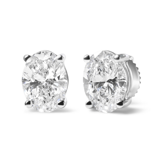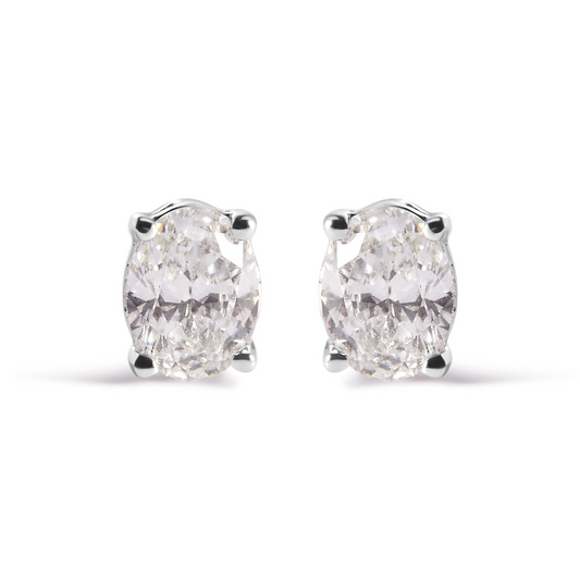 14K White Gold Prong Set Lab Grown Oval Diamond Solitaire Stud Earring (F-G Color, VS1-VS2 Clarity)