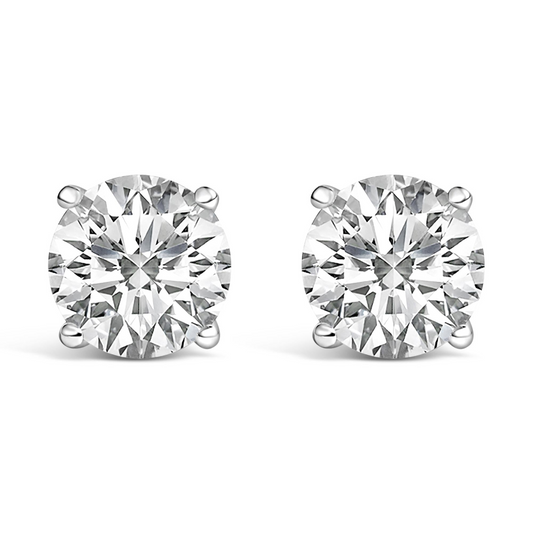 14K White Gold Round Brilliant-Cut Lab Grown Diamond Classic 4-Prong Stud Earrings with Screw Backs