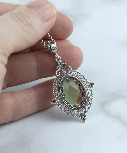 Filigree Art Alexandrite Gemstone Floral Figured Women Silver Oval Pendant Necklace