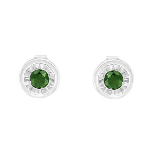 .925 Sterling Silver 1/4 Cttw Round Brilliant-Cut Green Diamond Miracle-Set Stud Earrings (Fancy Color-Enhanced, I1-I2 Clarity)
