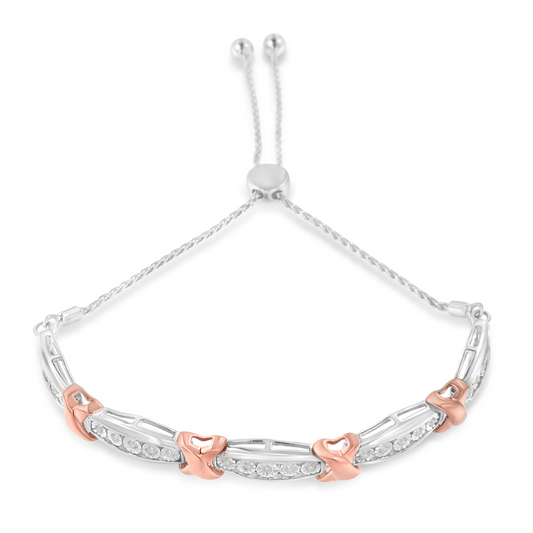 .925 Sterling Silver 1/4 Cttw Round-Cut Diamond X & Tapered Bar Miracle-Set Bolo Bracelet (I-J Color, I3 Clarity) - Two Tone Rose Gold & Silver
