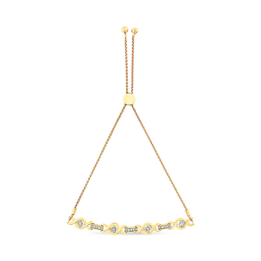.925 Sterling Silver Channel Set Diamond Accent Twist 4”-10” Adjustable Bolo Bracelet (I-J Color, I3 Clarity)