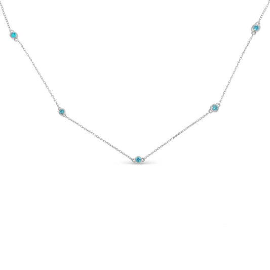 Sterling Silver Treated Blue Color Diamond Station Necklace (1/2 cttw, Blue Color, I2-I3 Clarity)