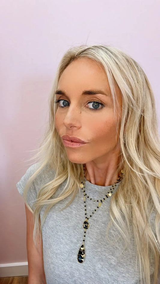 Double Diana Denmark Necklace in Black Onyx with Black Mojave Copper Turquoise Drop