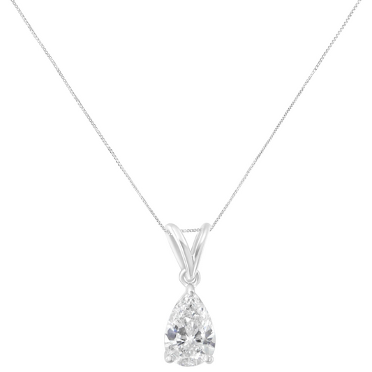 IGI certified 10K White Gold 1/2 cttw Diamond Pear Pendant Necklace (I-J, I1)
