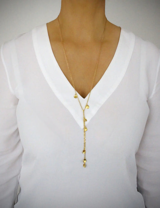 18K gold plated double chain butterfly necklace with Tanzanite crystals