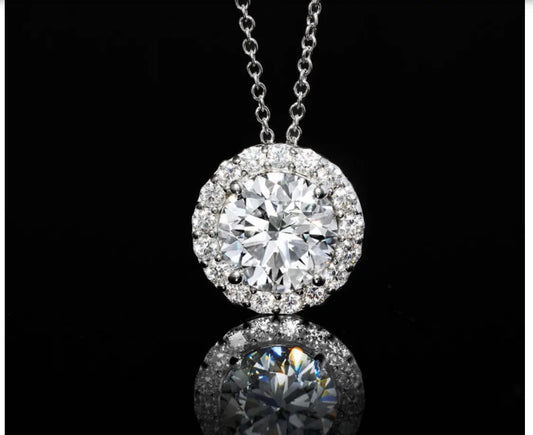 AGI Certified Lab-Grown Diamond Halo Pendant Necklace in 14kt White Gold – 1 CTW or 2 CTW