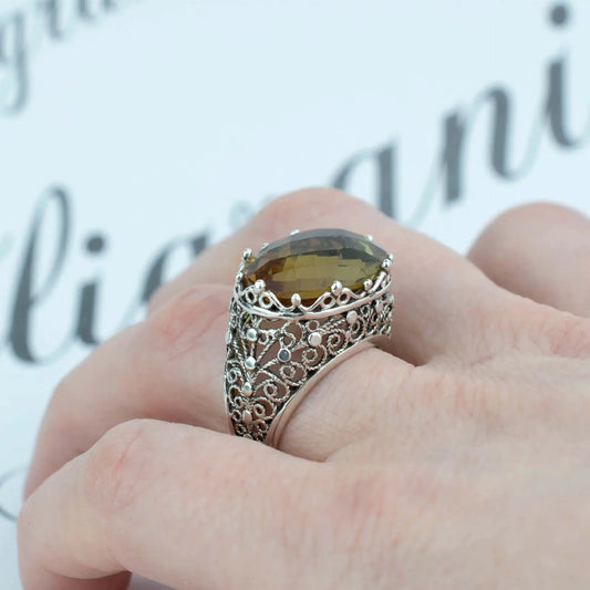 Filigree Art Alexandrite Gemstone Women Silver Dome Statement Ring