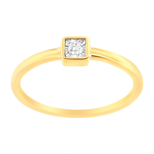 14K Yellow Gold Plated .925 Sterling Silver 1/20 Carat Diamond Square Cushion-Shaped Miracle Set Petite Fashion Promise Ring (J-K Color, I1-I2 Clarity)