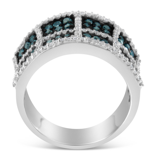 14K White Gold White and Treated Blue Diamond Cocktail Ring (1 1/2 Cttw, H-I Color, I1-I2 Clarity)