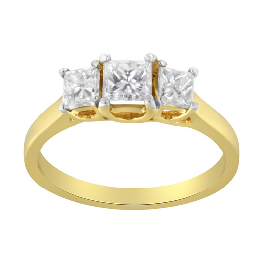 10K Yellow Gold Princess-Cut Diamond Three Stone Band Ring (1 Cttw, J-K Color, I1-I2 Clarity)