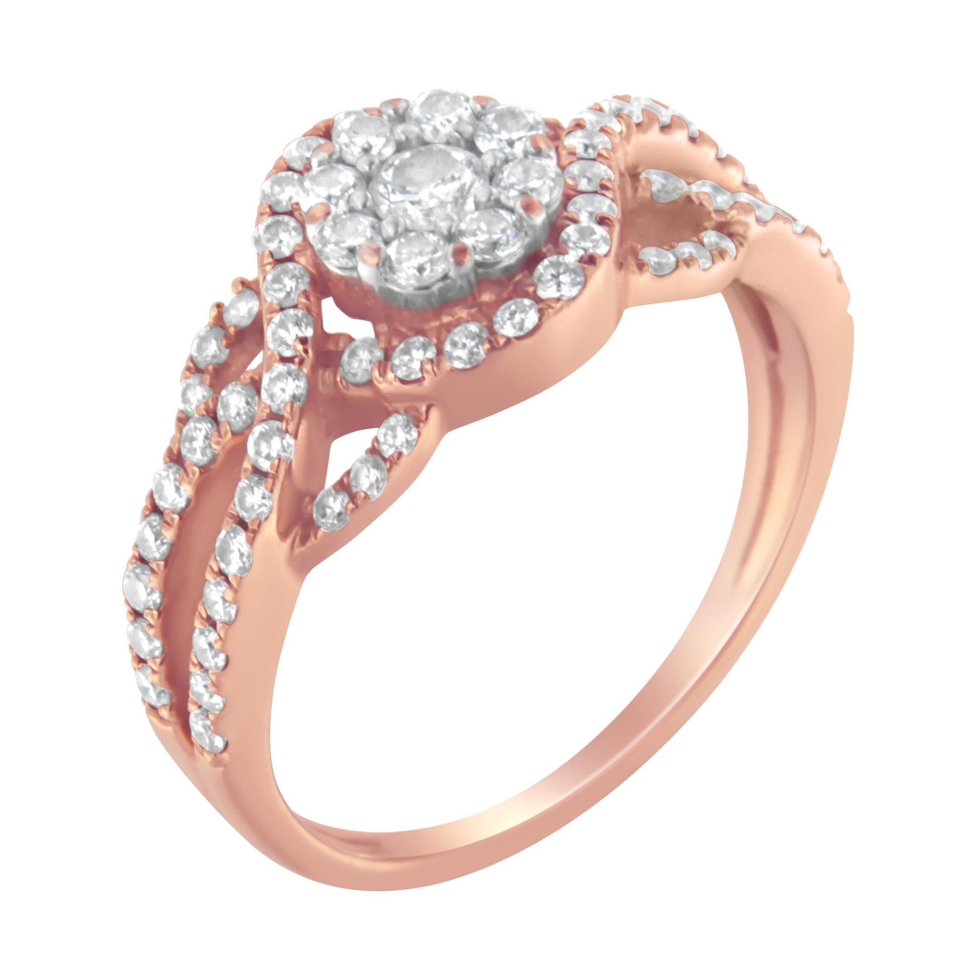 10K Rose Gold 3/4 Cttw Diamond Floral Cluster Head and Twisted Shank Cocktail Ring (H-I Color, SI1-SI2 Clarity)-
