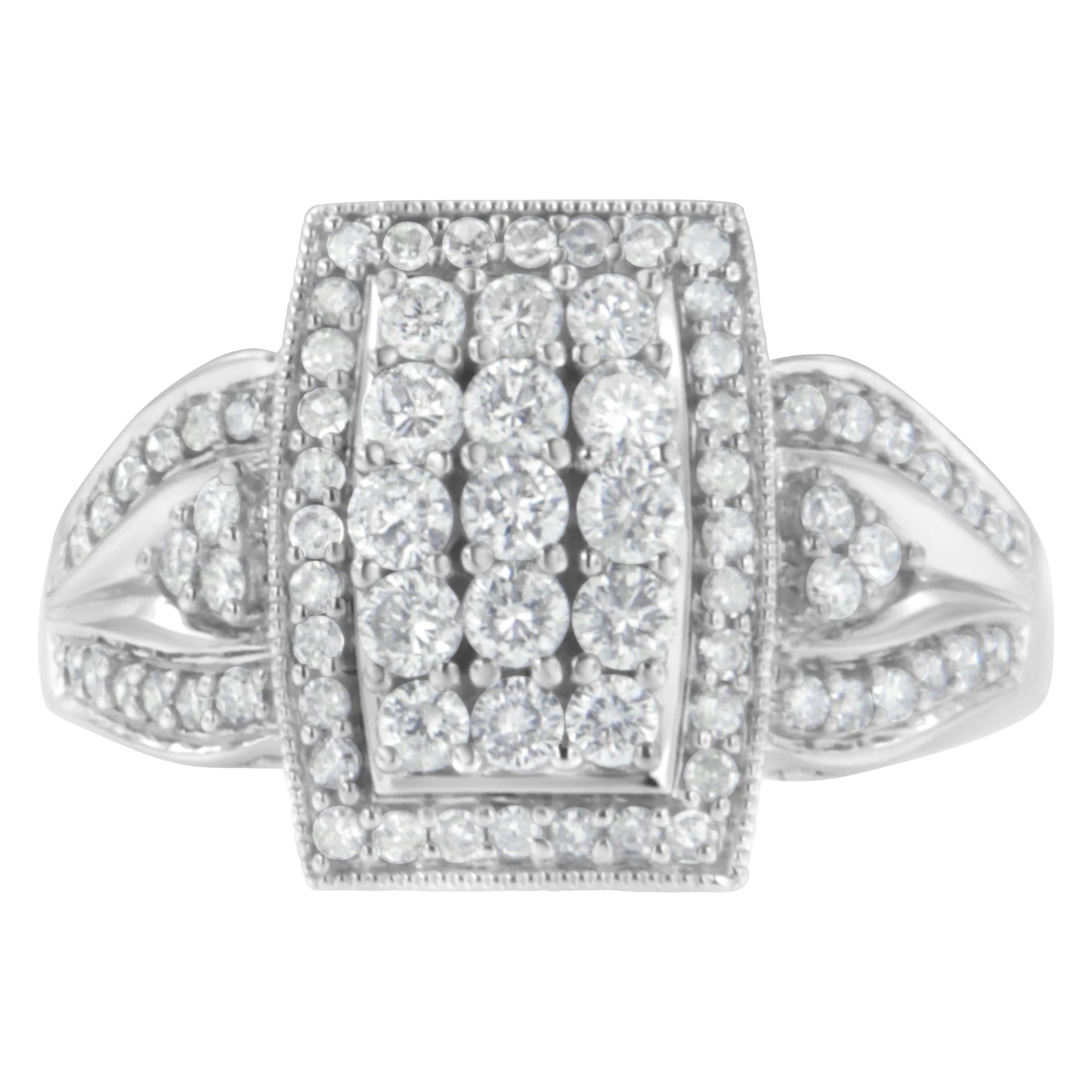 10K White Gold 1.0 Cttw Diamond Rectangular Cushion Shaped Cluster Halo Flared Band Cocktail Fashion Ring (H-I Color, SI2-I1 Clarity)