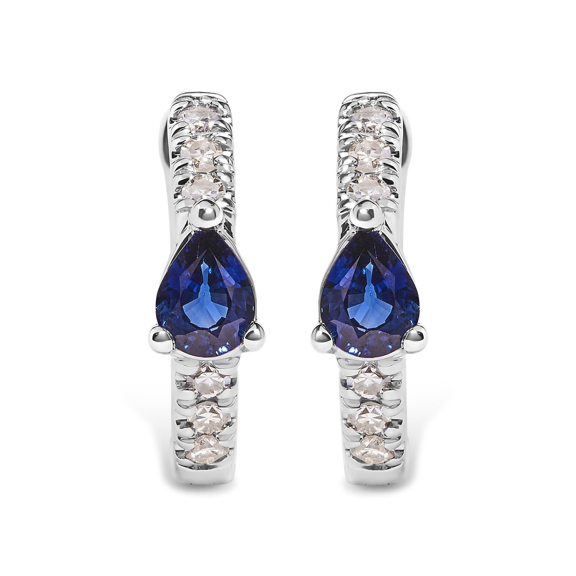 10K White Gold Pear Shaped Blue Sapphire and 1/10 Cttw Diamond Huggy Hoop Earrings (H-I Color, I1-I2 Clarity)