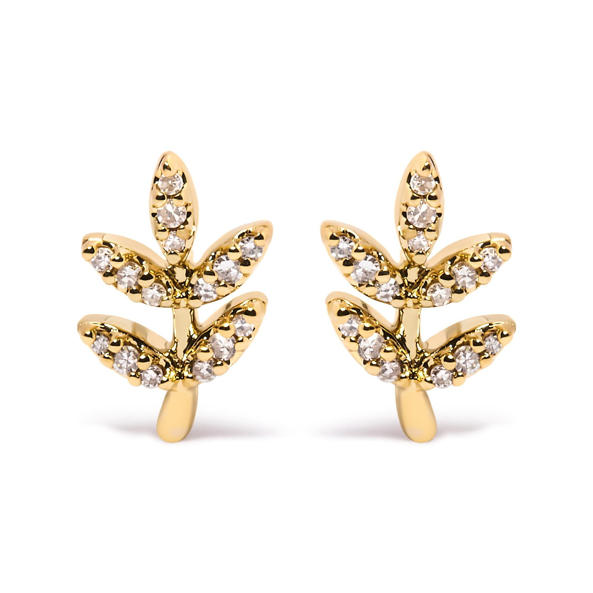 10K Yellow Gold 1/10 Cttw Diamond Accented Leaf and Branch Stud Earrings (H-I Color, I1-I2 Clarity)