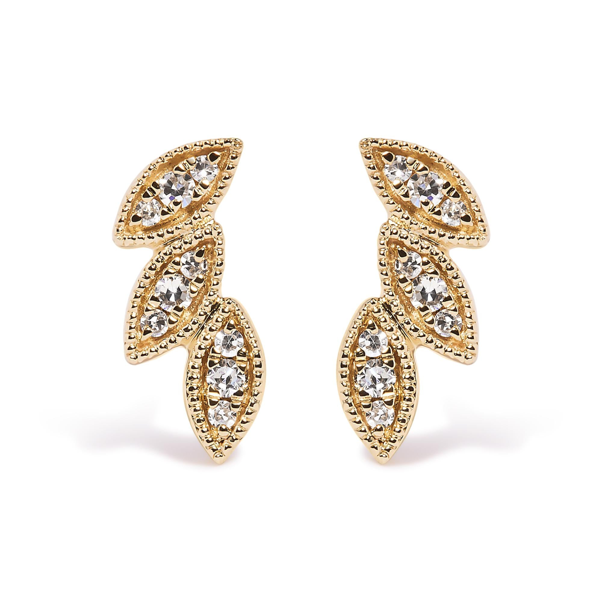 10K Yellow Gold 1/10 Cttw Diamond Triple Leaf Stud Earring (H-I Color, I1-I2 Clarity)