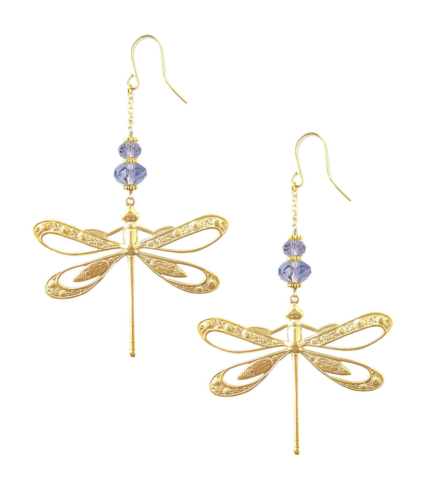 18K gold plated dragonfly earrings with Tanzanite crystals