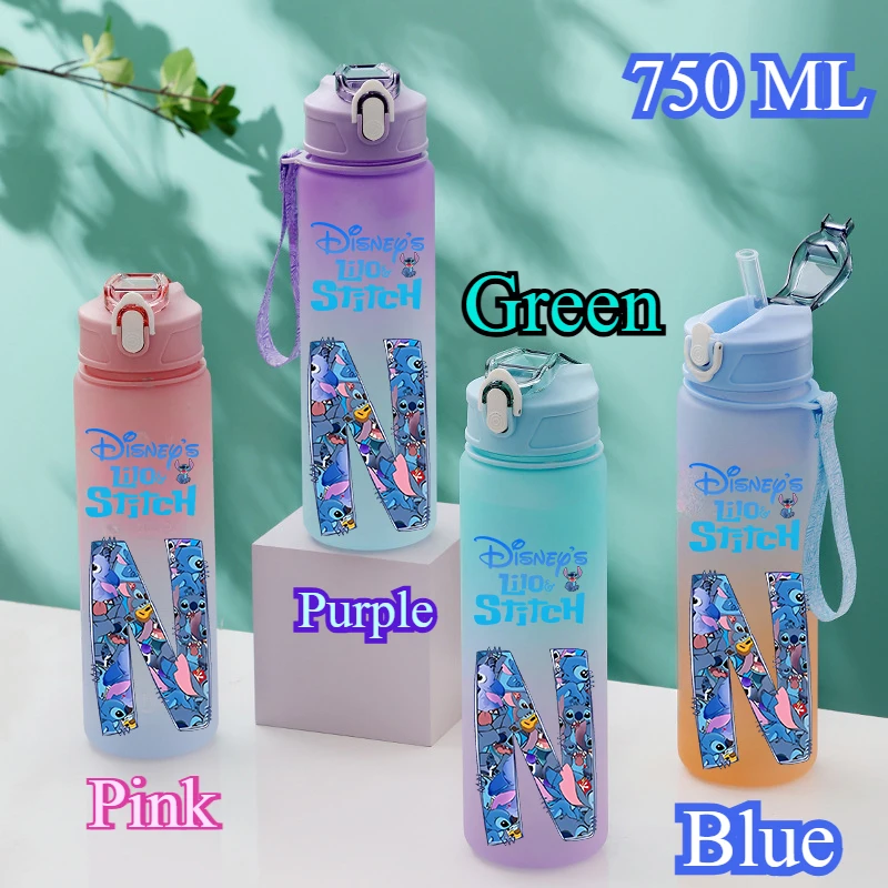 750ML Disney Stitch Letter A-Z Printed Water Bottle Large Capacity Drinking Portable Anime Outdoor Sport Water Cup Bottle Gift