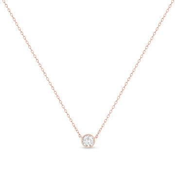 Some things shouldn't be reinvented, which is why we created the Solitaire Diamond Necklace. This is the perfect way to highlight every big occasion, transition, and personal achievement in your life. This solitaire diamond necklace features a single, round-cut 1/2 carat diamond in a genuine .925 sterling silver, and plated with 14k rose gold for extra appeal with bezel setting that hits at just the right place. This comes with an 18" inch cable chain. Invest now; your future self will thank you later.
