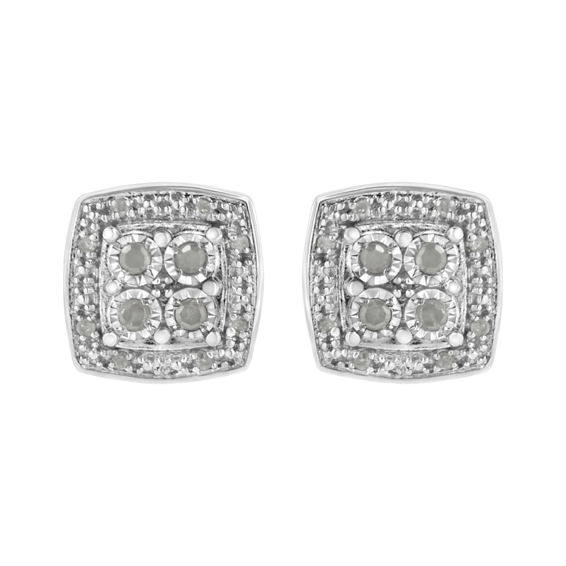 .925 Sterling Silver 1/4 cttw Round Cut Diamond Square Shape Milgrain Stud Earrings (I-J Color, I3 Clarity)