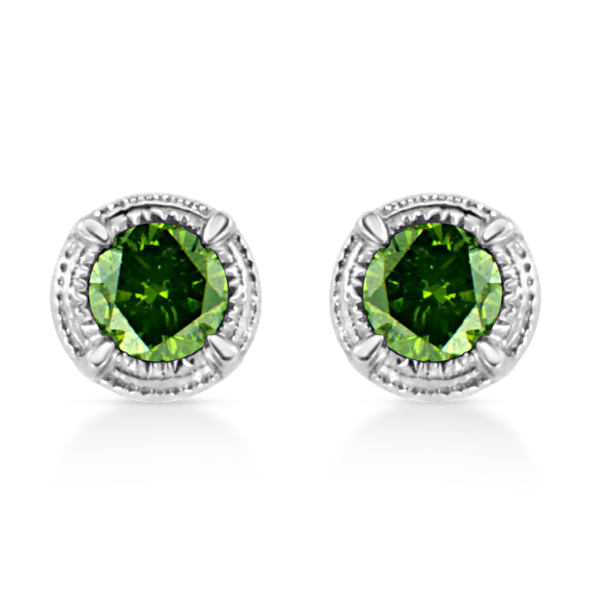 .925 Sterling Silver Treated Colored Diamond Modern 4-Prong Solitaire Milgrain Stud Earrings