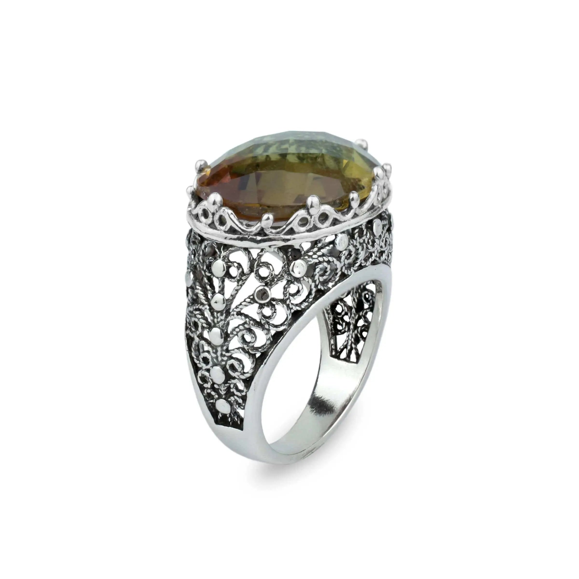 Filigree Art Alexandrite Gemstone Women Silver Dome Statement Ring