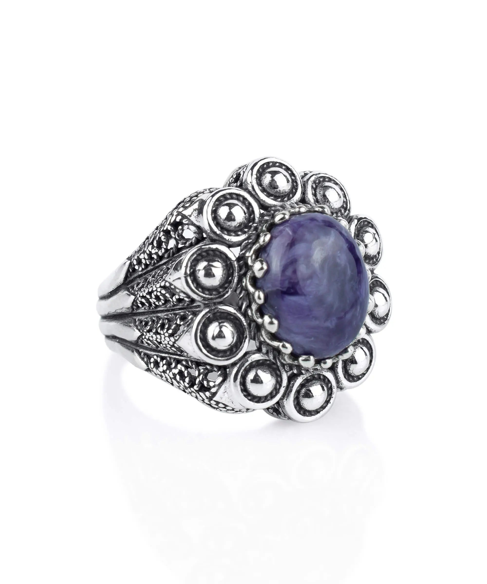 Filigree Art Charoite Gemstone Women Statement Dome Ring