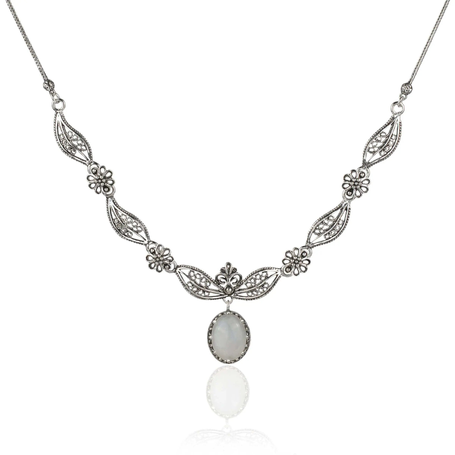 Filigree Art Gray Moonstone Gemstone Women Silver Princess Necklace