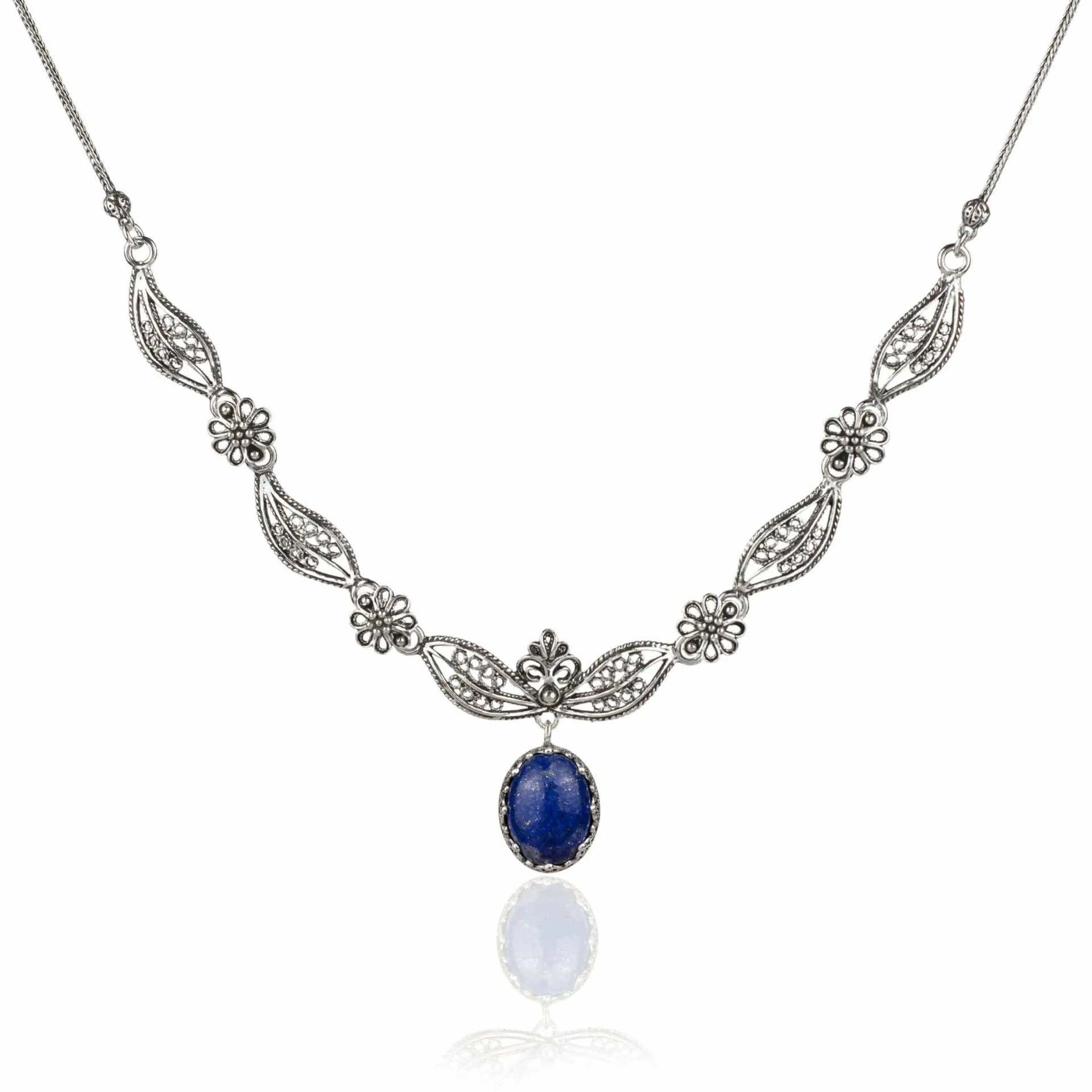 Filigree Art Lapis Lazuli Gemstone Women Silver Princess Necklace