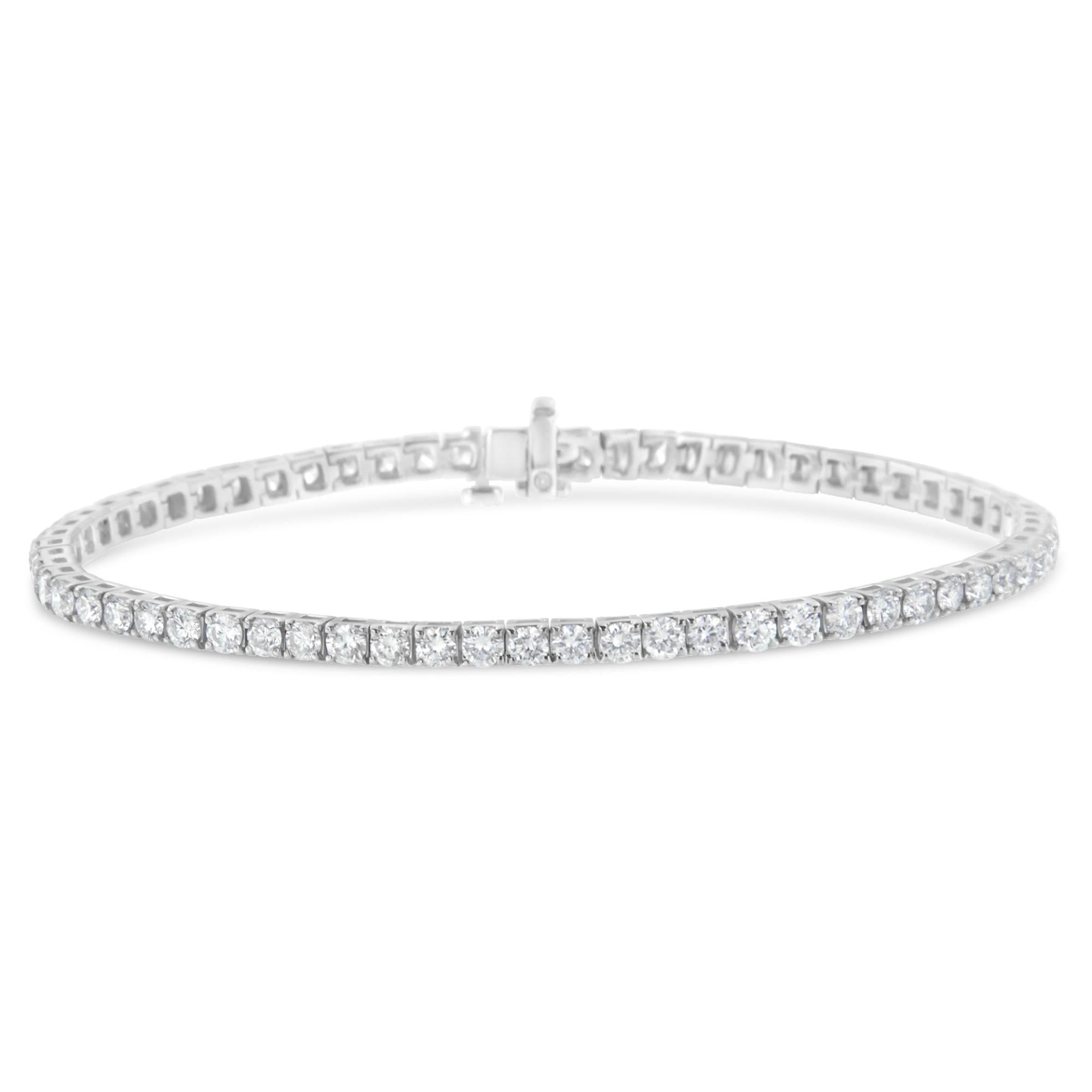 Elevate her attire with the luxe look of this magnificent diamond tennis bracelet. Elegant and timeless, this gorgeous 14K white gold bracelet features 4 carats total weight of round cut diamonds in four prong settings. The 7” bracelet fastens securely with a box clasp. This authentic design is crafted of real 14 karat gold, a precious metal that will keep a tarnish-free shine for years to come. This sweet tennis bracelet makes a perfect gift for any occasion. Diamonds are thought to give the wearer clarity and illuminate solutions to life’s problems, as well as encouraging abundance, strength, courage, harmony, faithfulness, and commitment. Give her a gift that will perfectly complement her favorite ensemble; it's a classic and feminine piece she'll want to show off every day. This bracelet comes with a certificate from the IGI for added assurance. It ships out in beautiful packaging for easy gift giving.