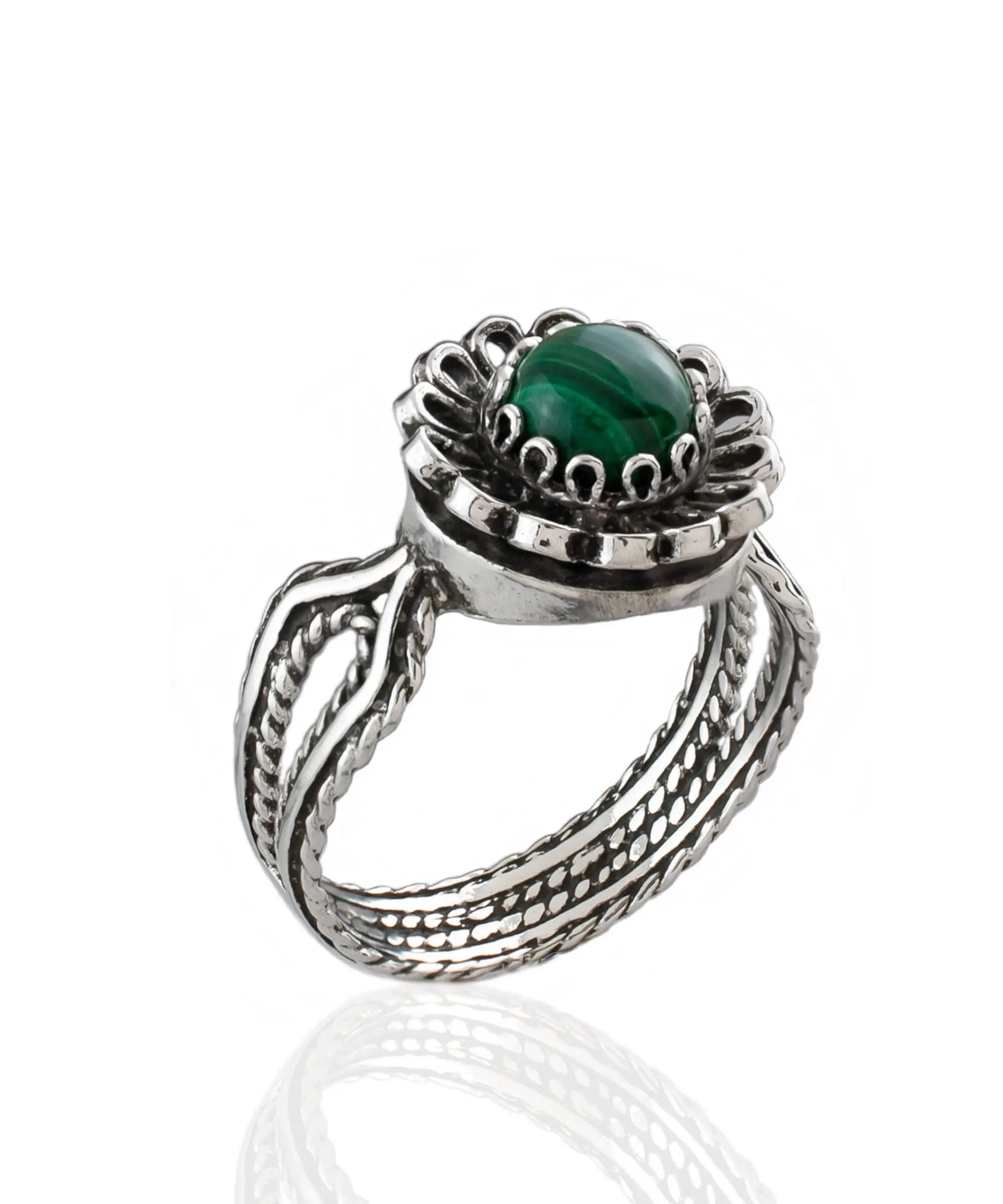 Malachite Gemstone Sterling Silver Women Cocktail Ring
