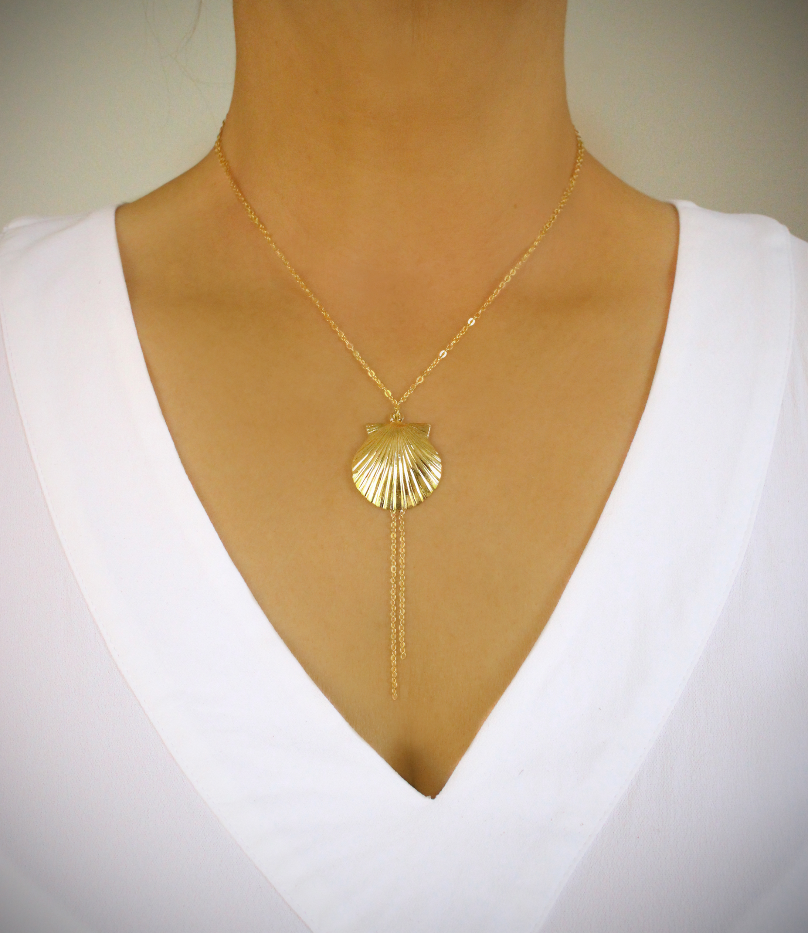 Step into the spotlight with this stunning seashell Y-necklace, handmade with 18K gold plating. Elegant and eye-catching, this statement piece is a total conversation starter. Dress it up with matching seashell earrings and bracelet for maximum impact.