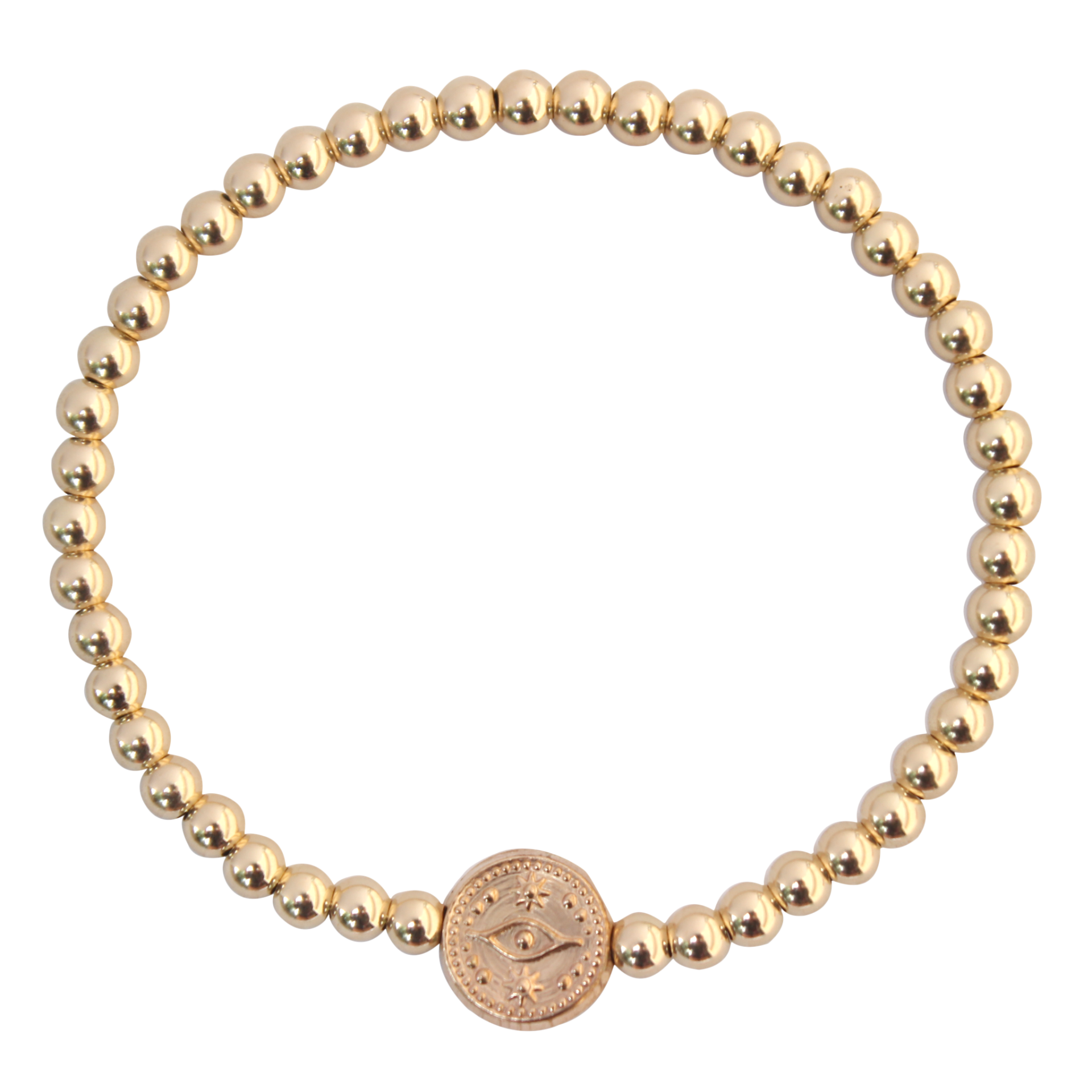 14k gold filled Evil eye bead on 14k gold filled 4mm beads.