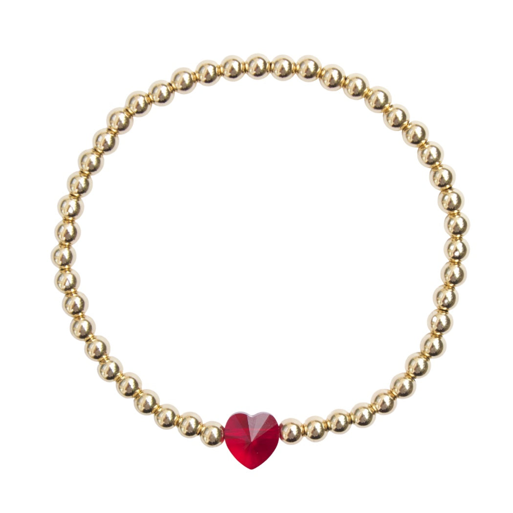 4mm 14k gold filled bracelet with a Swarvoski crystal heart charm.