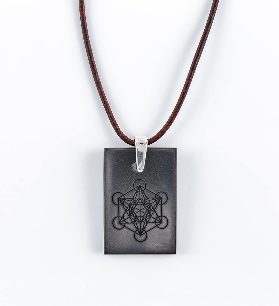 The pendant is engraved with Metatron’s Cube, a sacred geometry symbol. This unique 2-dimensional image of the 3-dimensionality of space represents earth, air, water, fire, & spirit, the building blocks of the universe. It is believed to protect, cleanse & amplify your energy, and create a peaceful environment.
