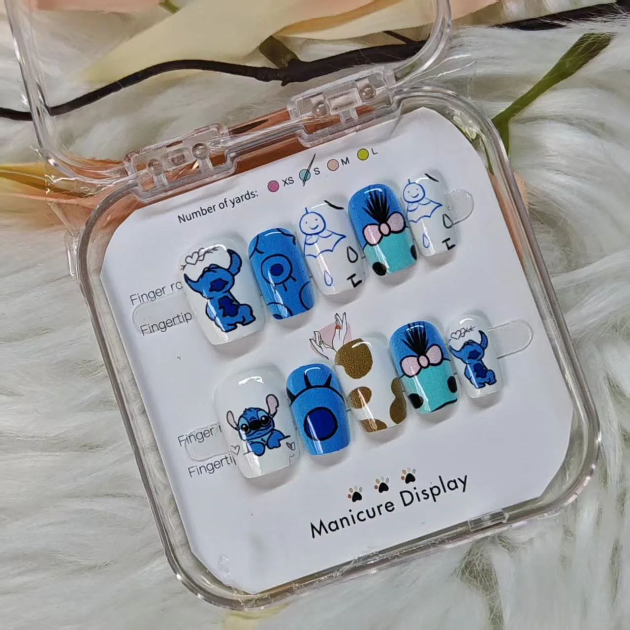These Stitch - themed press - on nails are a dream for Disney fans! Adorable Stitch designs in cute blue tones, with some featuring his classic big eyes and funny expressions. Multiple sizes (XS/S/M) ensure a perfect fit for every finger, just check the size chart.